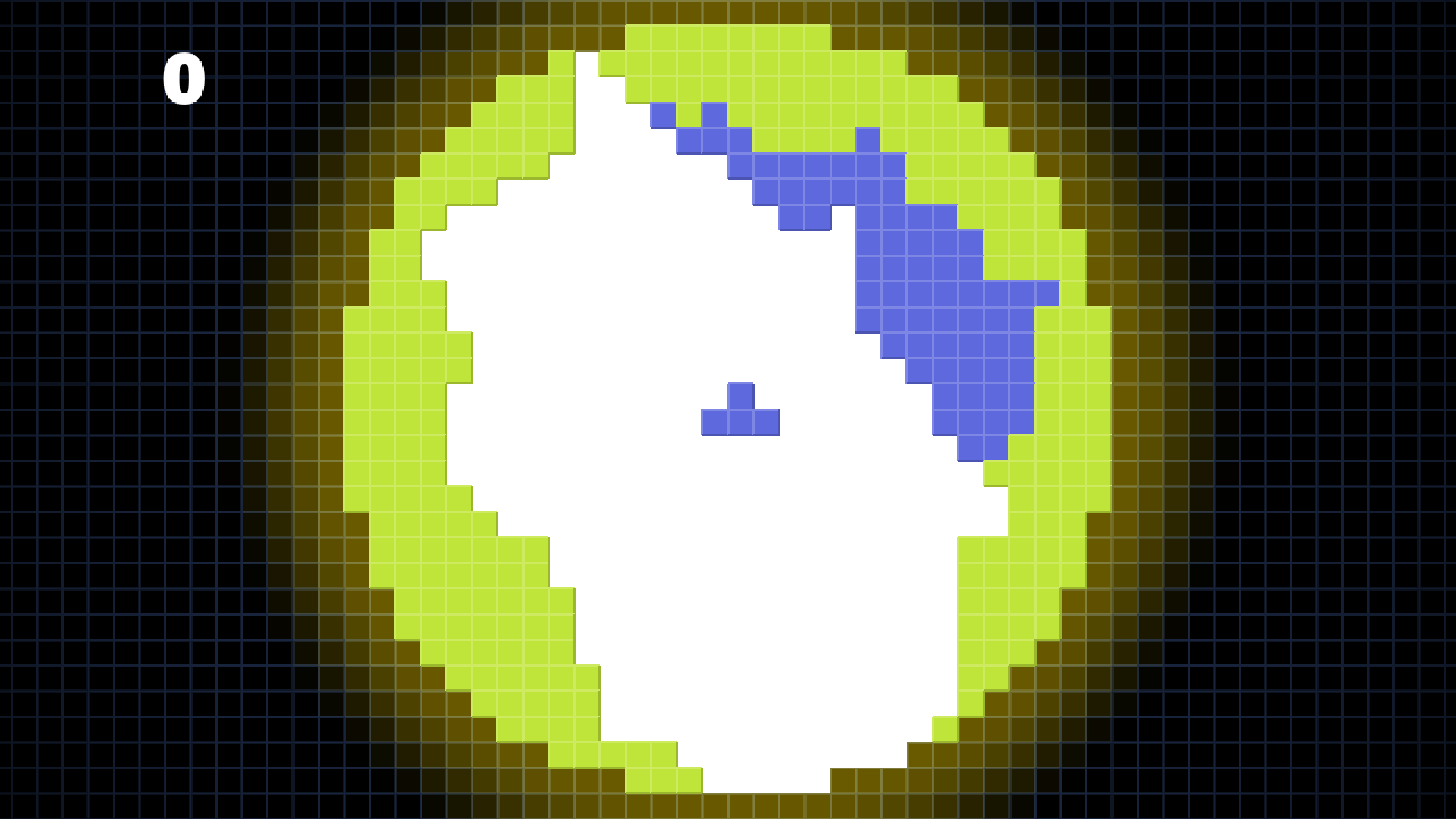 Just a mix of Tetris and Sand-Simulation, but instead of gravity just being down, it goes outwards.